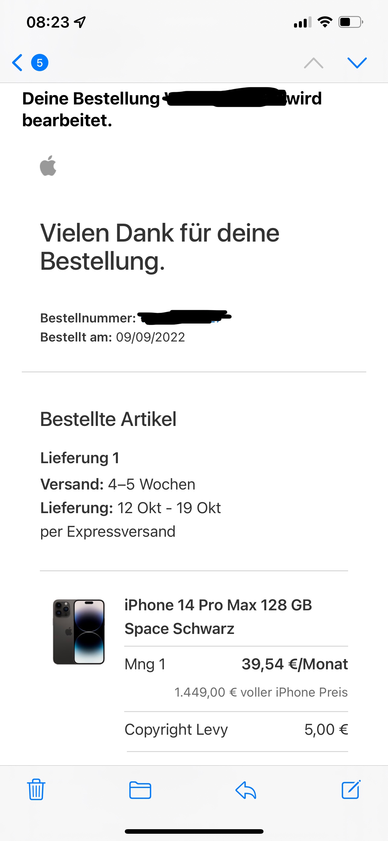 Leider kommt mein iPhone erst zwischen dem 12. - 19. Oktober. War ich wohl zu langsam 🐌😄