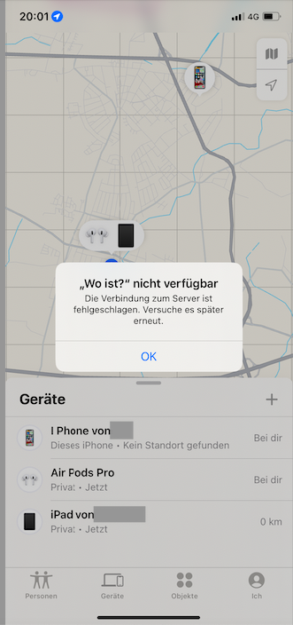 „Wo ist“ funktioniert nicht mit Mobilfunkverbindung