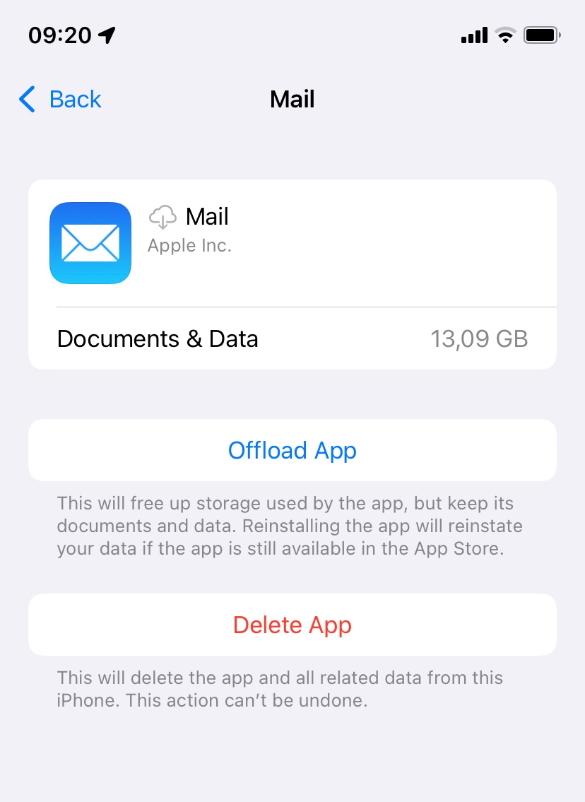 Apple Mail-App auf dem iPhone 11 nimmt sehr viel Speicherplatz ein