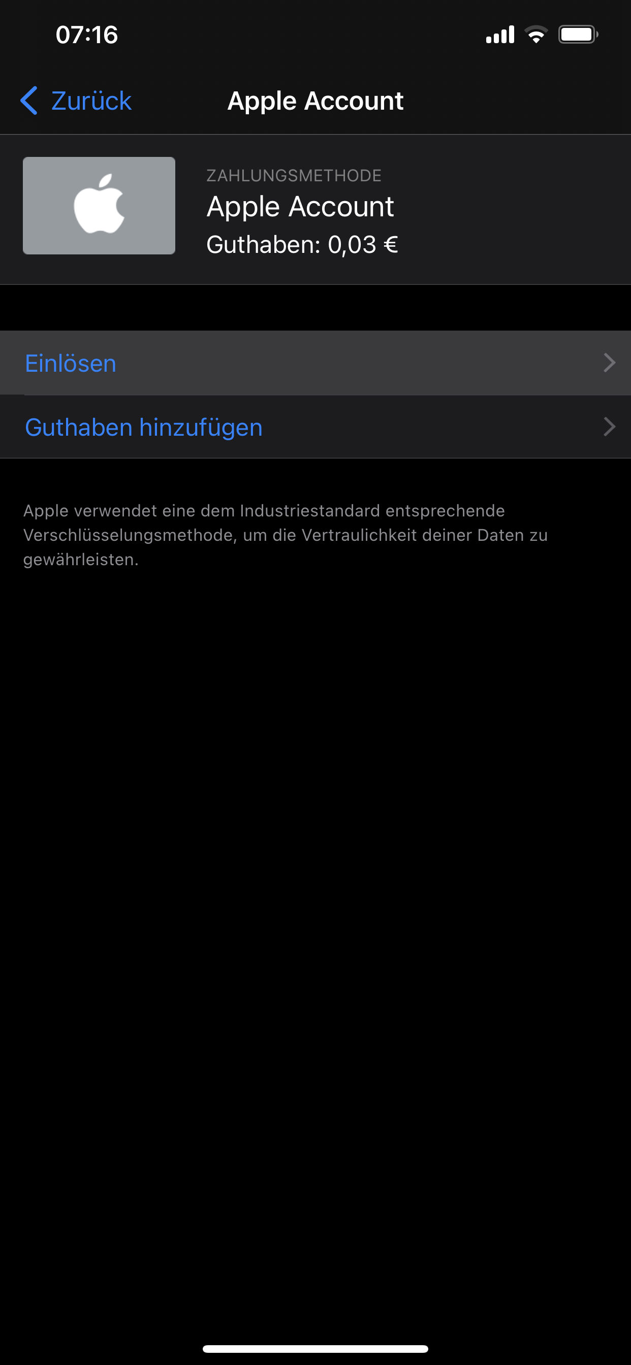0,03€ Apple Account-Guthaben entfernen