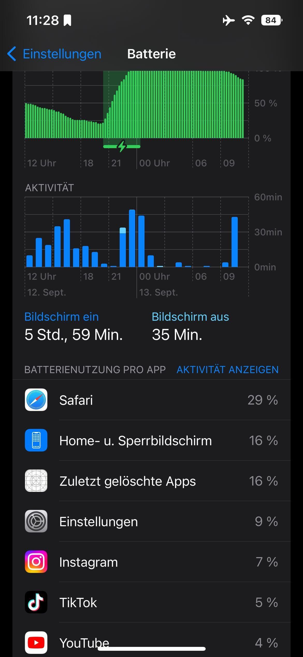 Und dann: Hintergrundaktualisierungen abschalten - die habe ich bis auf wenige auf „aus“ oder „wenn die app benutzt wird“ - ja und einmal die Woche: Bei Einstellungen - Safari „Websitedaten und Verlauf löschen“ ausführen. Da werden Cookies und anderes aus dem Cache entfernt. Und: auch mal - wenn es Dir seltsam vorkommt mit dem Verbrauch - mal einen erzwungenen Neustart ausführen. Viele Grüsse
