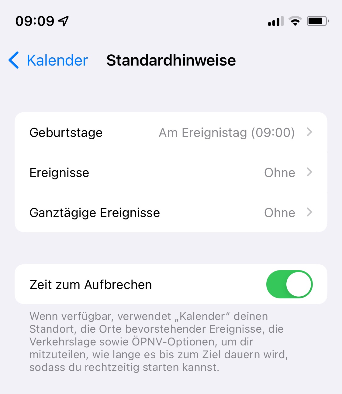 hat irgendjemand eine Idee wo es noch herkommen könnte? Es ist ziemlich nervend dass zum Beispiel der tägliche Termin zur Arbeit zu fahren 1x 25 Minuten vorher und dann nochmal 20 Minuten vorher (Zeit zum fahren) pushed …