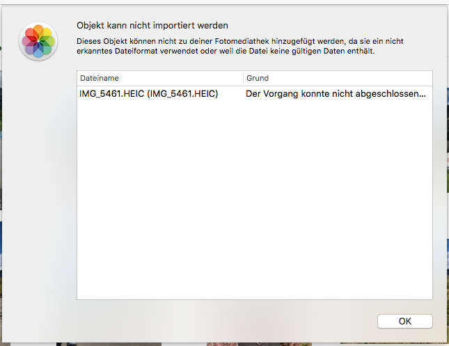 Die zu importierenden Bilder sind alle im jpg Format und nicht in High Efficiency.