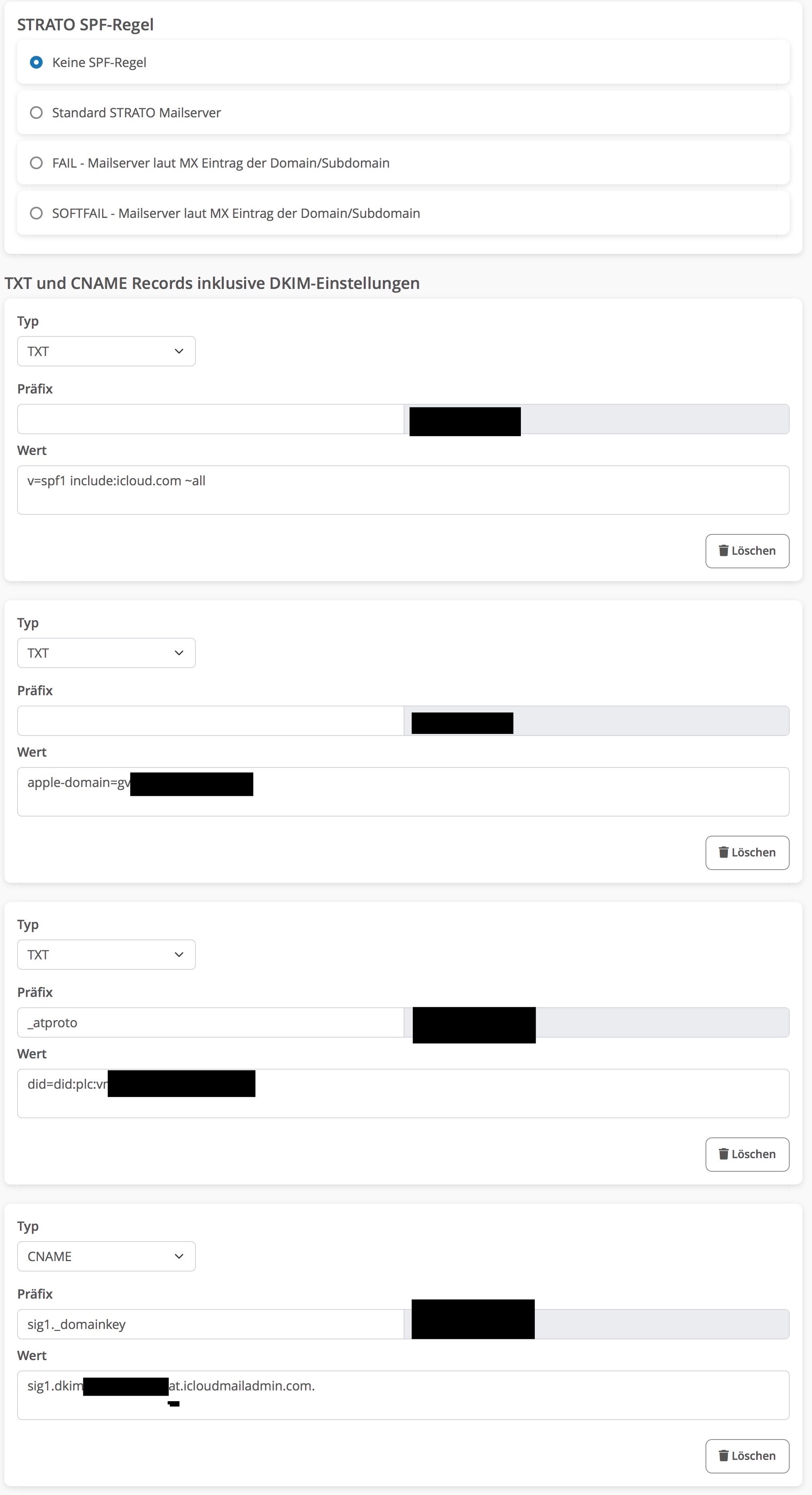 Nicht nur dass die Daten die Apple angibt nicht ansatzweise man bei Strato so eintragen kann wie Apple es vor gibt. Es fängt doch damit schon an dass Apple die Priorität als Zahl ausgibt und Strato nur hoch oder niedrig kennt.