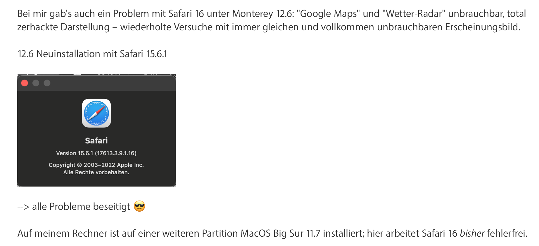 Neuinstallation Monterey 12.6 mit Safari 15.6.1 hat das Problem gelöst.