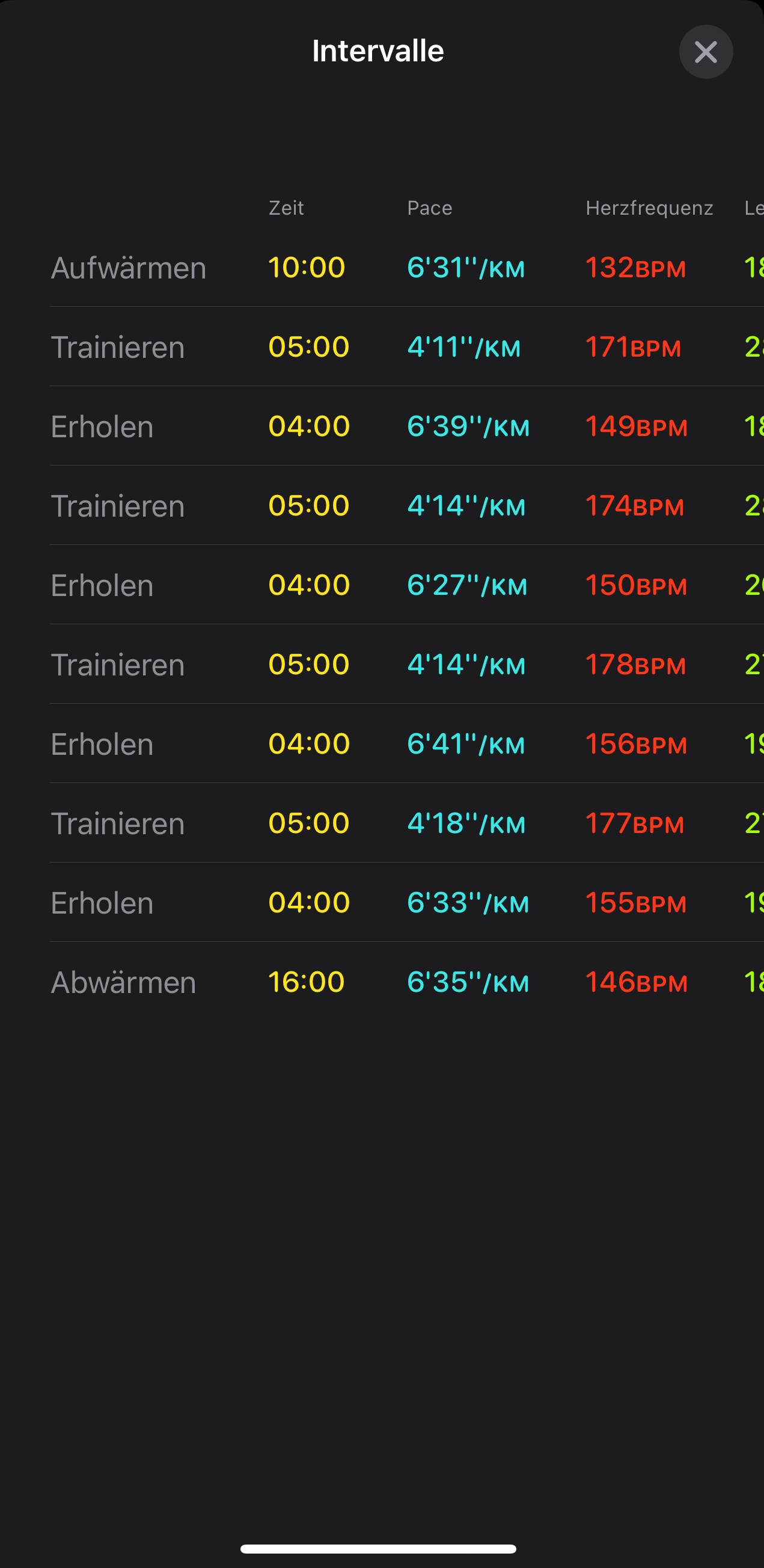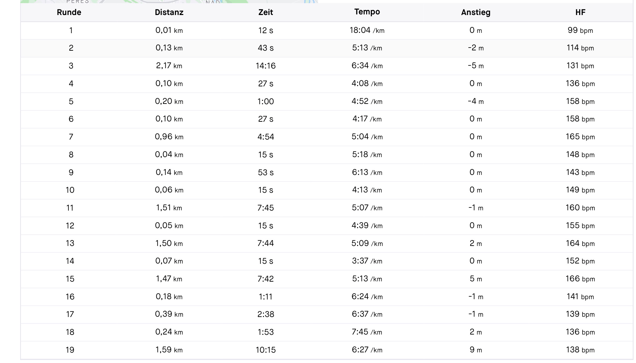 Folgend ein Beispiel wie es mit einer anderen App aussieht bzw. was ich erwartet hätte. Und dann das Intervall der Trainingsapp.