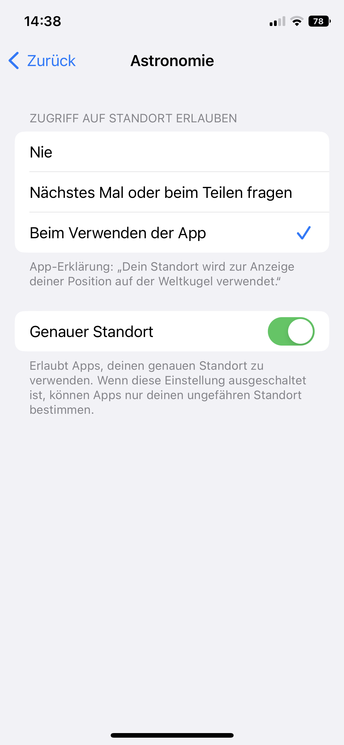 ich habe gestern auf meinem iPhone XS das neue iOS 16 installiert und direkt mal den Sperrbildschirm geändert zu „Astronomie“. Ich wurde auch nach Standort Freigabe gefragt welches ich bestätigt habe. Jedoch wird bei mir nicht der korrekte Standort auf der Erdkugel angezeigt sondern grob Europa bzw. Asien.