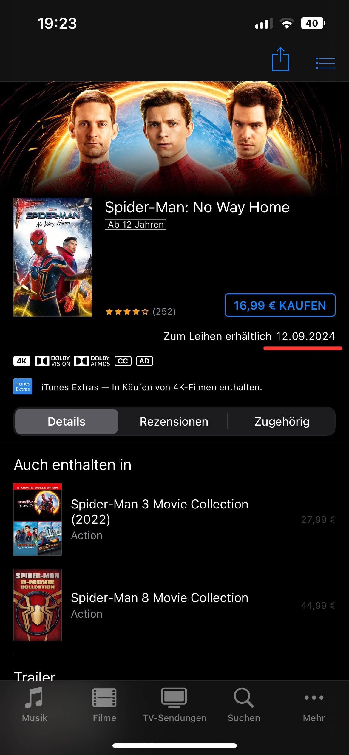 ist Spider-Man: No way Home wirklich erst ab 12.09.2024 zum leihen verfügbar? Ich dachte gesehen zu haben, dass man den vor 1-2 Monaten schon mal über iTunes leihen konnte.