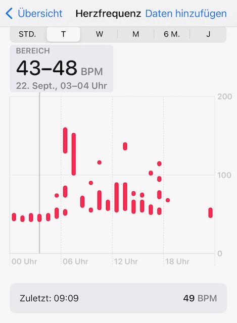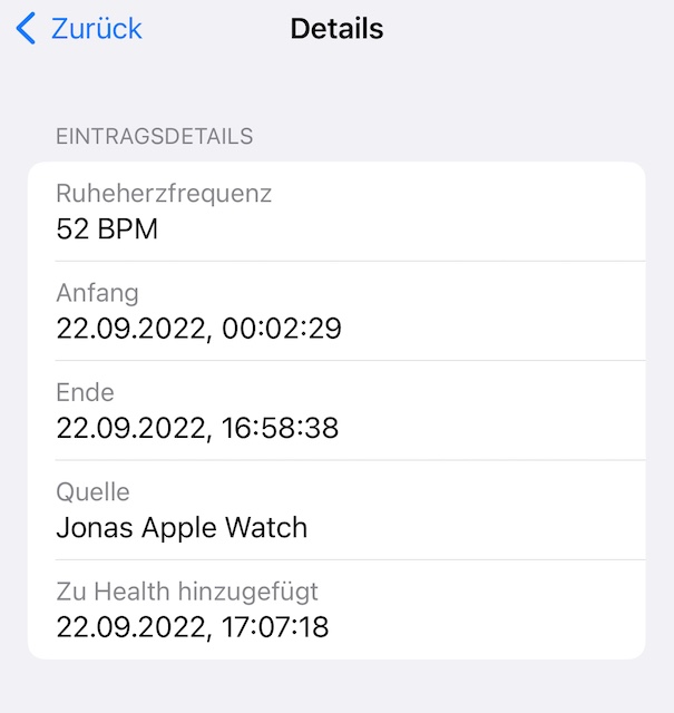Vielen Dank für deine Antwort. Ich habe unten ein paar Screenshots aus der Health App eingefügt, um mein Problem zu illustrieren. Dies ist ein Beispiel eines Tages vom 22. September 2022.