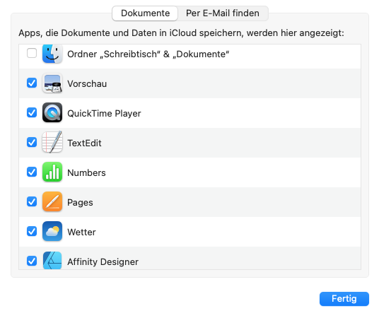 ...diese beinhalten je nach dem welche Apps man auf dem Mac hat die Möglichkeit diese "ein- und auszuschalten", um den Apps zu erlauben Dokumente und Daten in iCloud zu speichern!