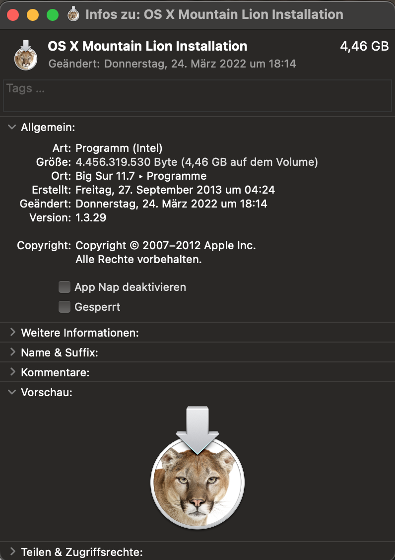 Wieder zurück bedeutet für mich das OS X Lion auf dem Mac bereits einmal gelaufen ist und er somit die Systemvoraussetzungen erfüllt.