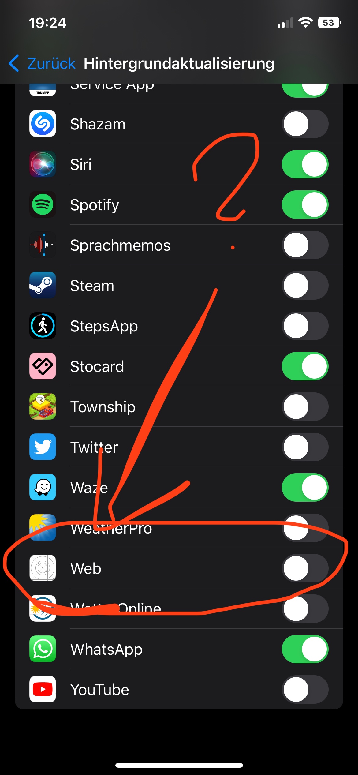hab problem mit hintergrundaktualisierung da ist was mit web 😶🤨 und ich kann das nicht finden bei meine apps und nicht löschen von iphone hmm ich habe sorge ganzer iphon zurückgesetzt und ist immer noch da bitte um Hilfe 🙏