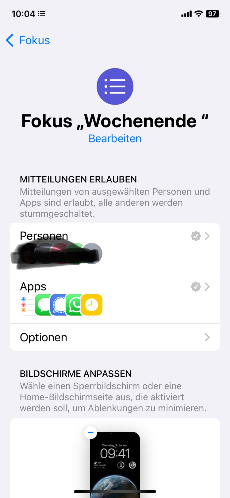 Mitteilung im Sperrbildschirm trotz aktiviertem Fokus