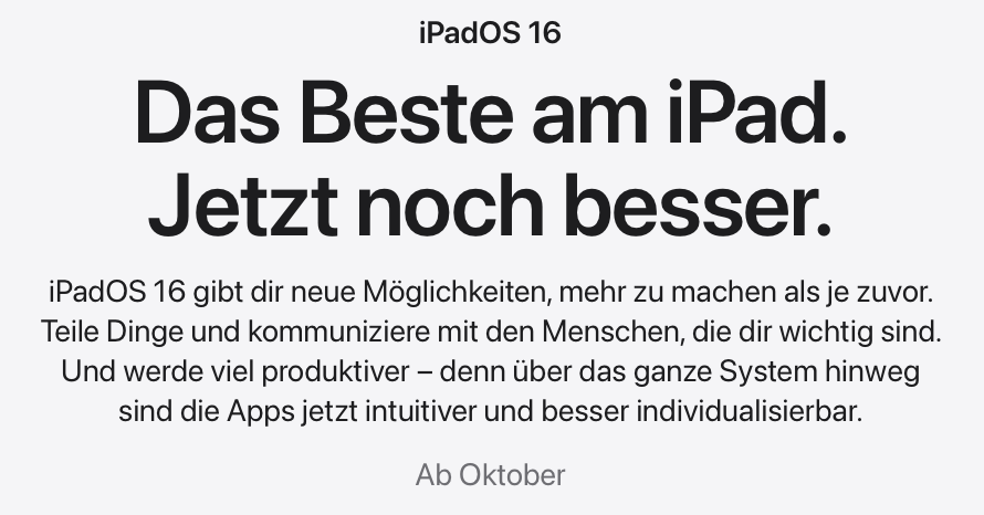 iOS 16 ist schon seit einigen Tagen draußen und es wird Zeit das iPadOS 16 veröffentlicht wird. Weiß jemand wann das veröffentlicht wird?