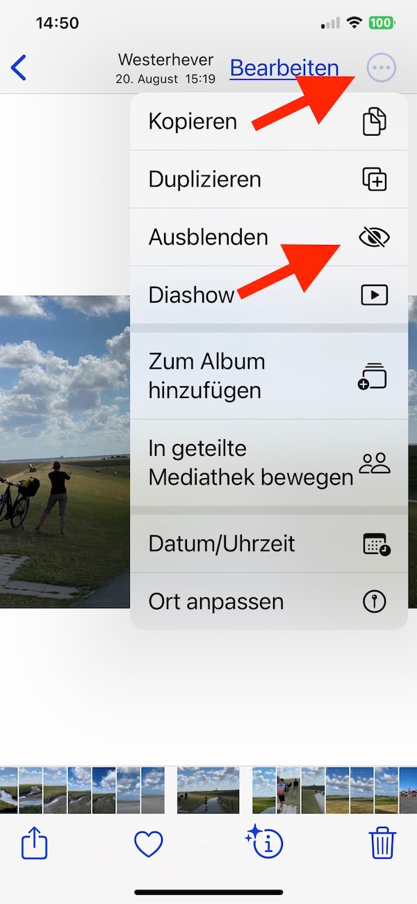 Hallo, ich versuche Bilder auszublenden in der Galerie aber mir wird „ausblenden“ nicht angezeigt, nachdem ich auf Teilen gedrückt habe. Kann mir einer helfen, dass es wieder da steht.