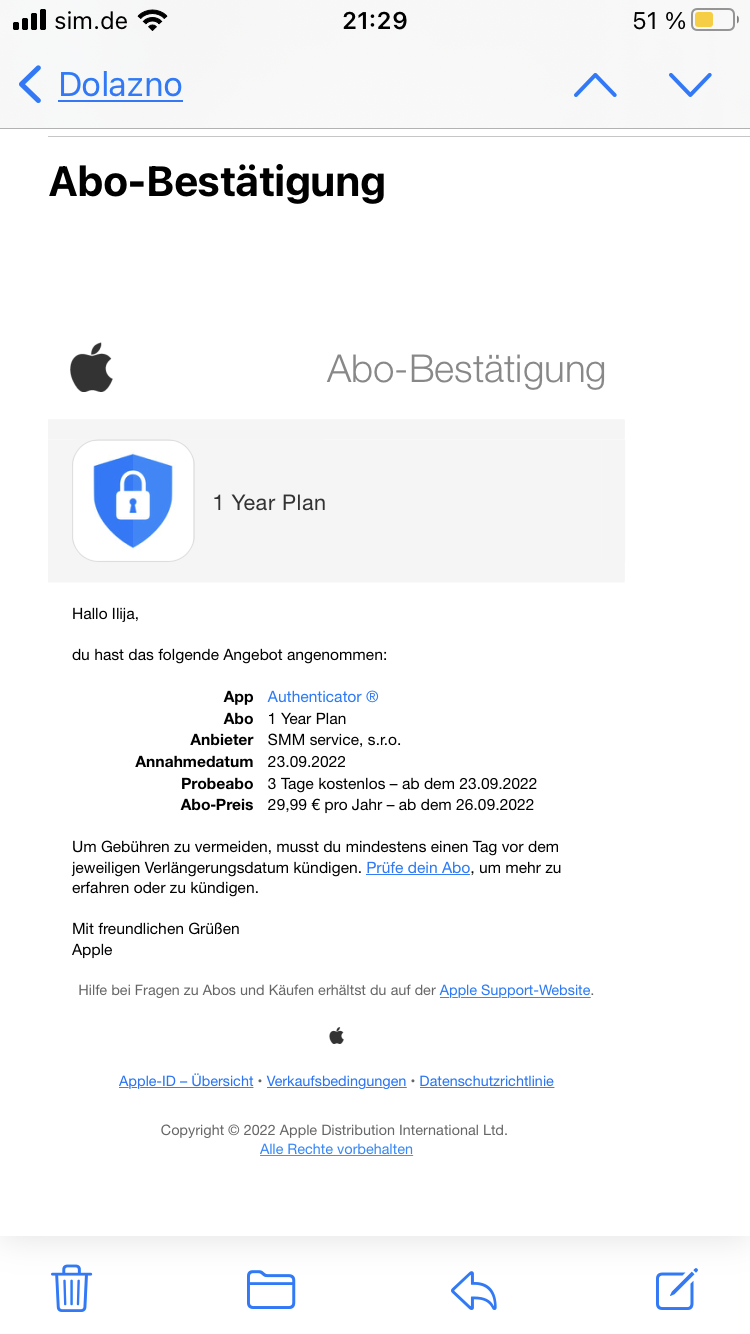 Ich möchte Abo kündigen, ich habe versehentlich eine Anwendung installiert, die mir nicht bei der Lösung meines Problems geholfen hat und für mich unnötig ist, da es eine 3-Tage-Testversion gab und ich Abo jetzt nicht kündigen kann