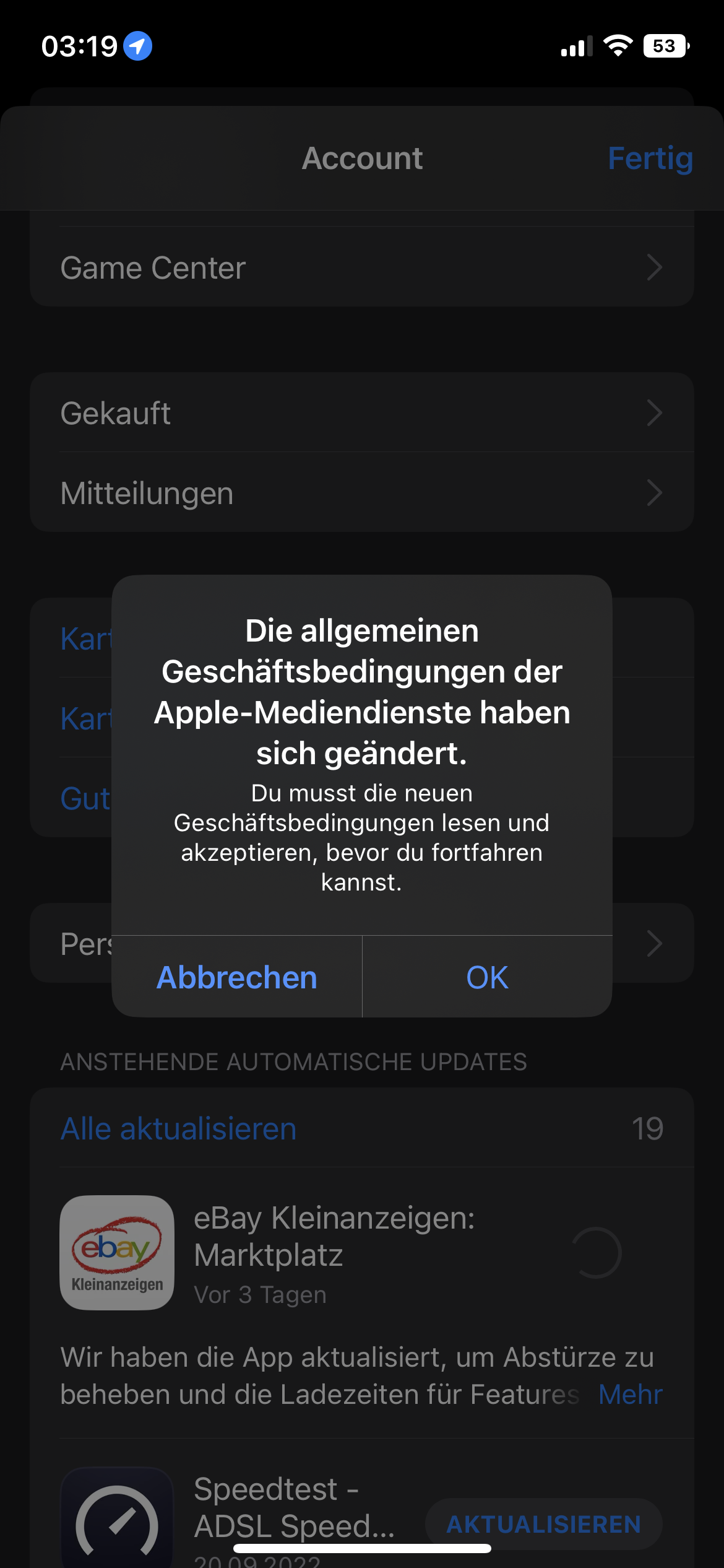 Ich kann meine allgemeinen Geschäftsbedingungen nicht akzeptieren und dadurch meine Apps nicht aktualisieren. Ich bitte um Rückmeldung