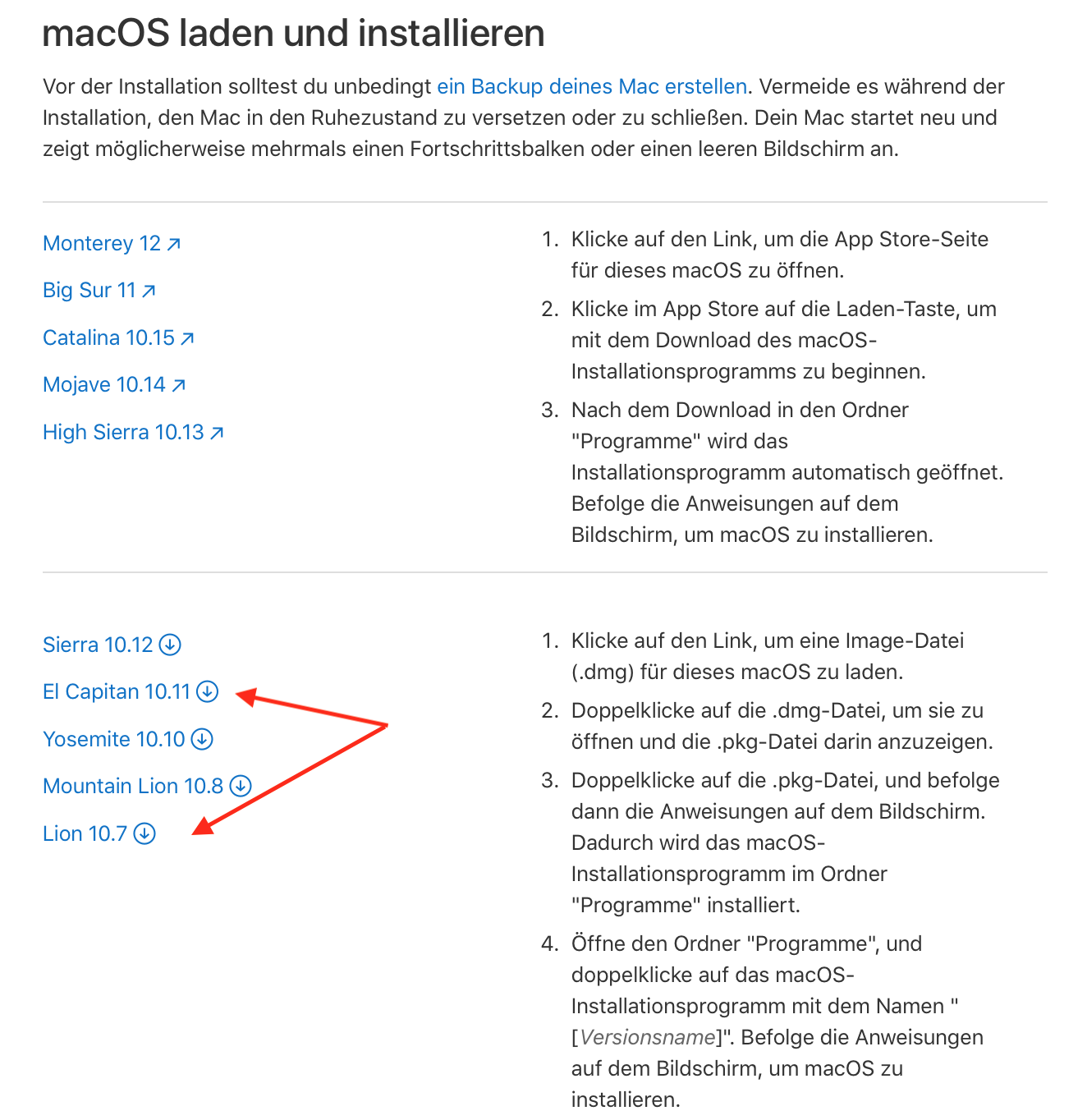 die Modelljahre 2007/2008 sind MacOS El Capitan 10.11.6 ausgereizt.