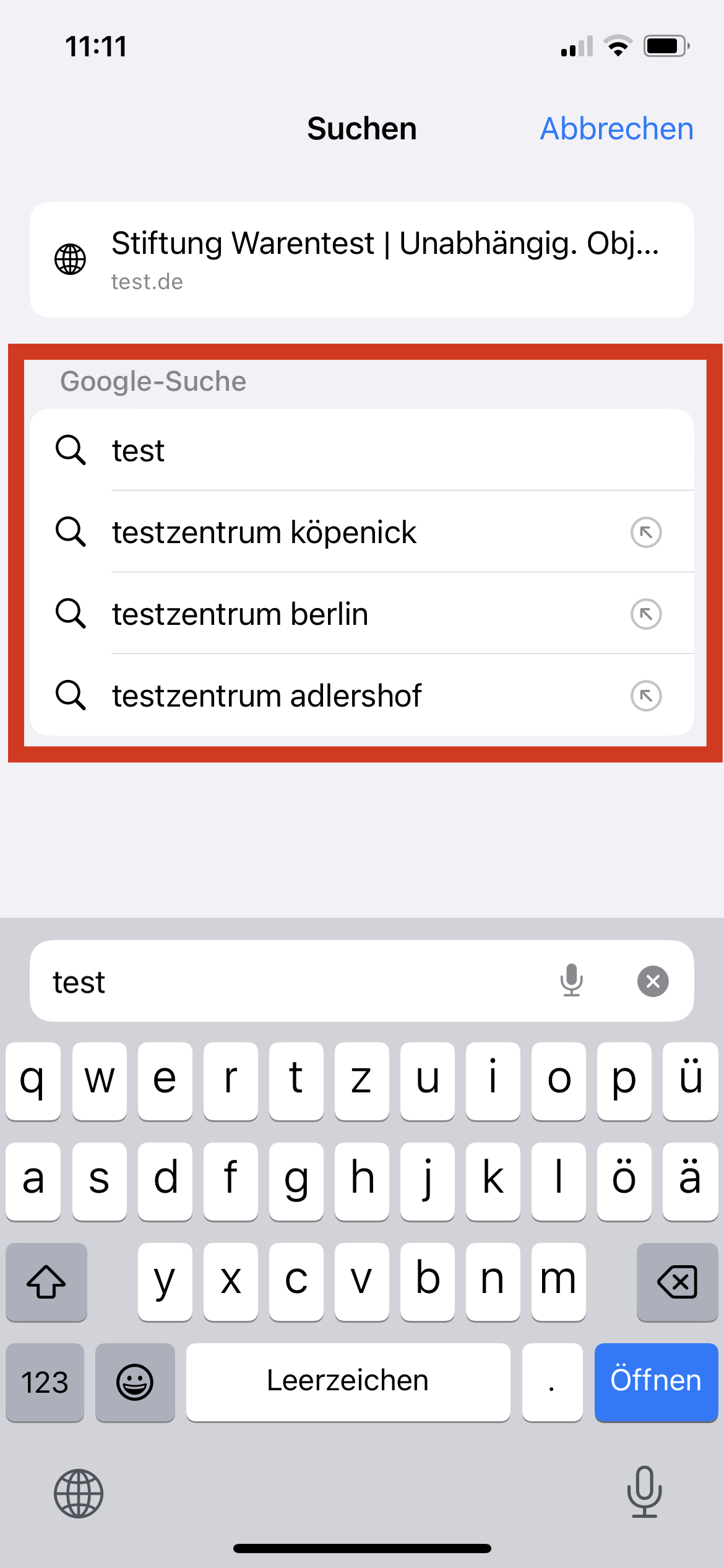 Egal was ich eingebe, es werden keine Vorschläge angezeigt. Auch wenn ich in den iPhone Einstellungen die Suchvorschläge De- und Aktiviere, ändert sich nichts.