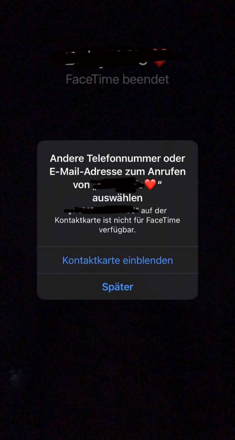 ich und meine Freundin können uns gegenseitig nichtmehr bei FaceTime anrufen. Es ging jahrelang ohne Probleme aber von heute auf morgen wird mir angezeigt dass die Nummer mir auf der Kontakt Karte nicht verfügbar ist. Obwohl ich nie was geändert habe. Habe meine Apple ID mit FaceTime verbunden geht nicht, wieder abgemeldet und versucht geht auch nicht.