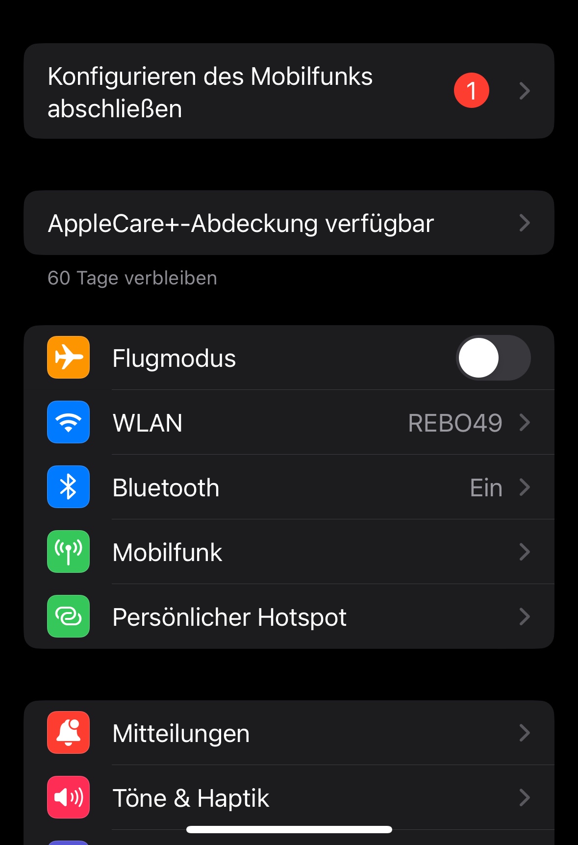 Was passiert denn, wenn man auf "Konfigurieren des Mobilfunks abschließen" tippt?