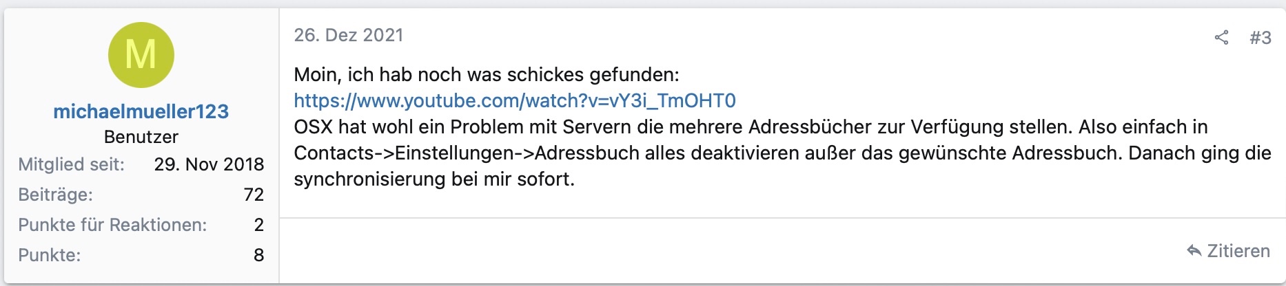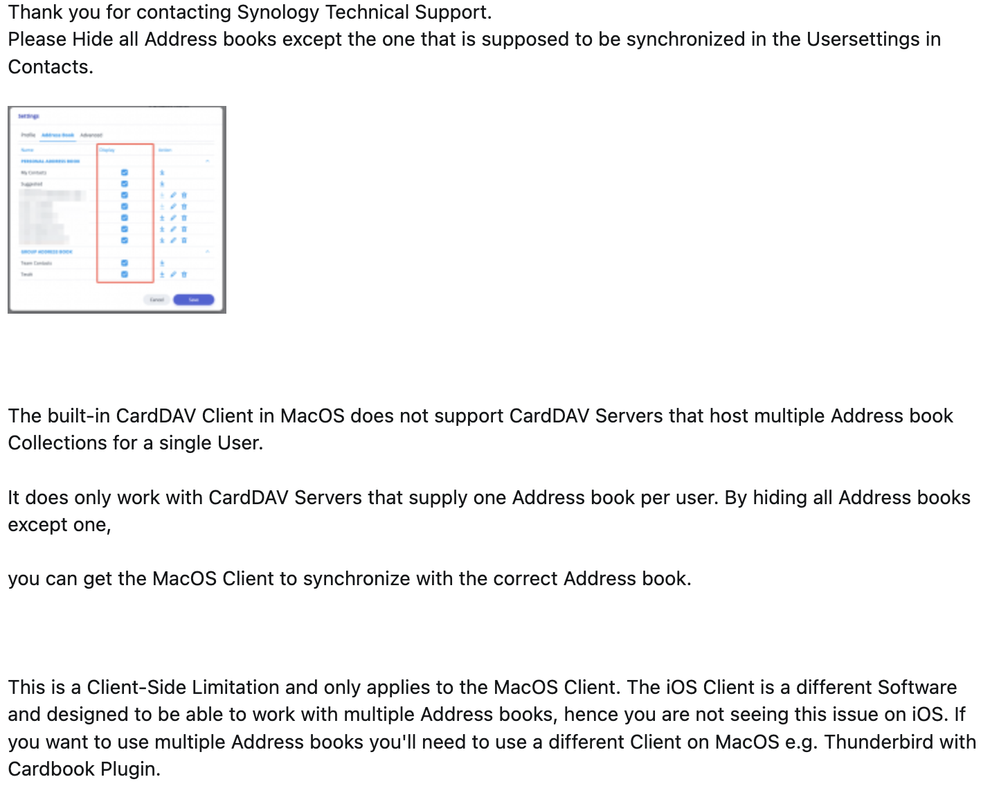 macOS Kontakte mit Synology Contacts synchronisieren scheitert