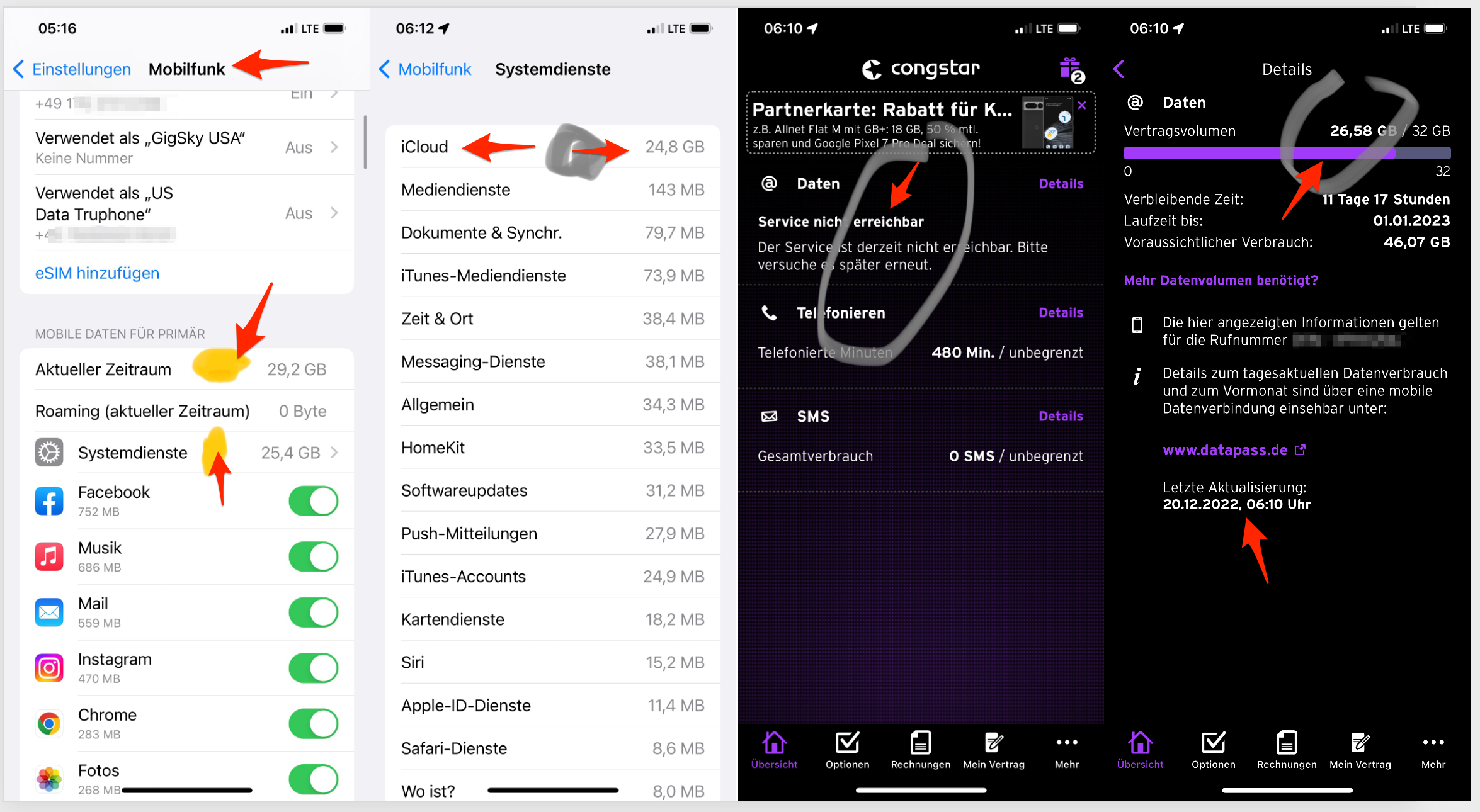 Systemdienste der iCloud verbraucht über Nacht 16 GB mobile Daten