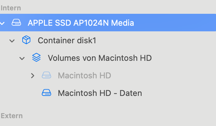 darunter die "Macintosh HD-Data", die dann auch größer ist.