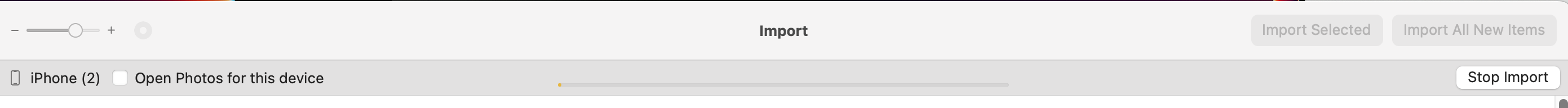Hallo, ich versuche meine Fotos vom iPhone 12 (Version 16.0.2) auf meine MacBookPro (Version 12.5.1) in die Fotos App zu übertragen. Es ist egal, ob ich nur ein Foto auswähle, oder mehrere ... der Import funktioniert einfach nicht. Die Statusleiste bewegt sich keinen Zentimeter. Ich kann den Import auch nicht abbrechen mit dem Button "Stop Import". Wenn ich da drauf klicke, passiert nichts. Somit muss ich die Fotos App neu starten, um wieder alle Funktionen wie den "Import Selected" Button zu erhalten.