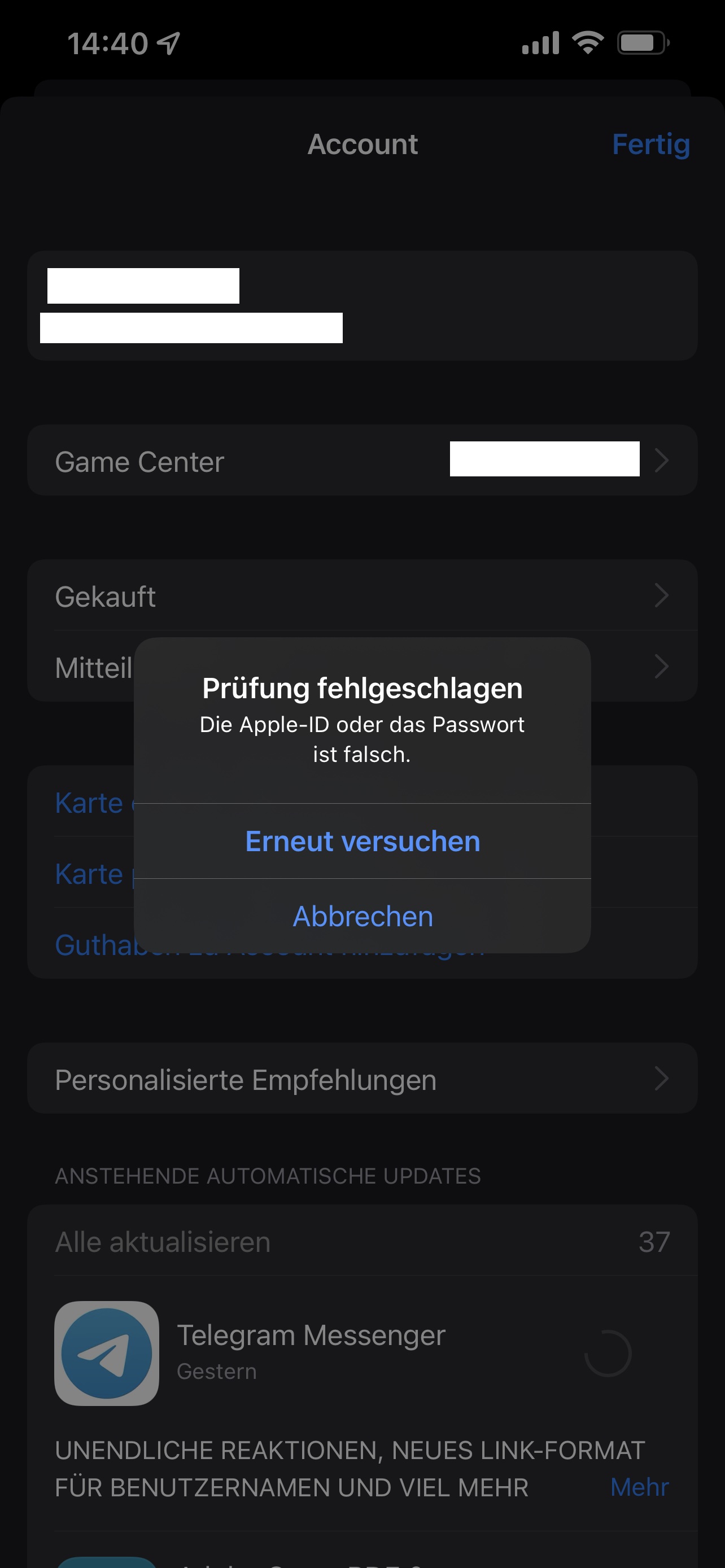Ich kann keine App Aktualisieren, weil ich meine Apple ID geändert habe
