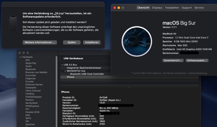 Seit dem macOS Big Sur Update verbindet sich USB-Kabel des iPhone 12 mini nicht mehr richtig