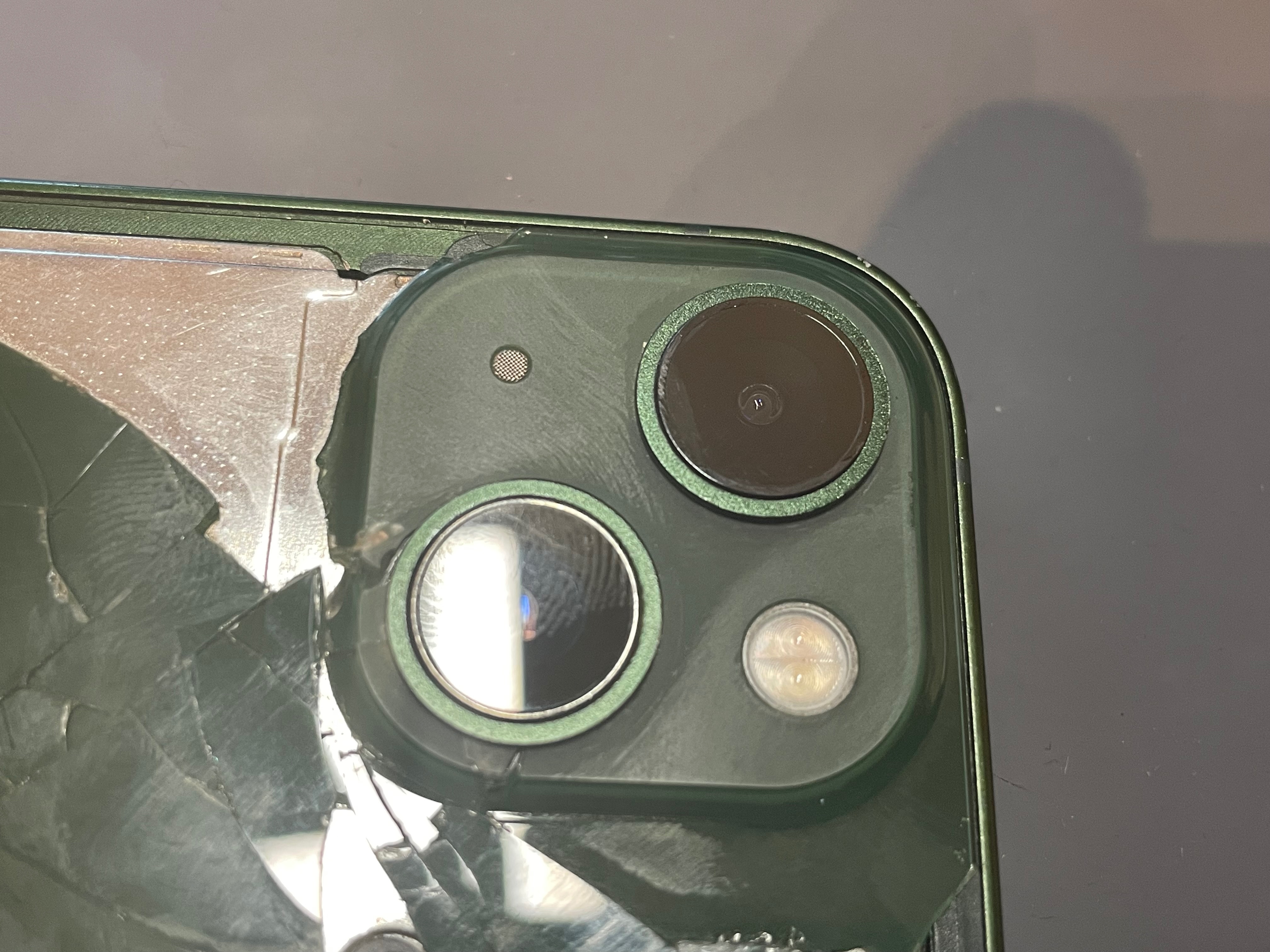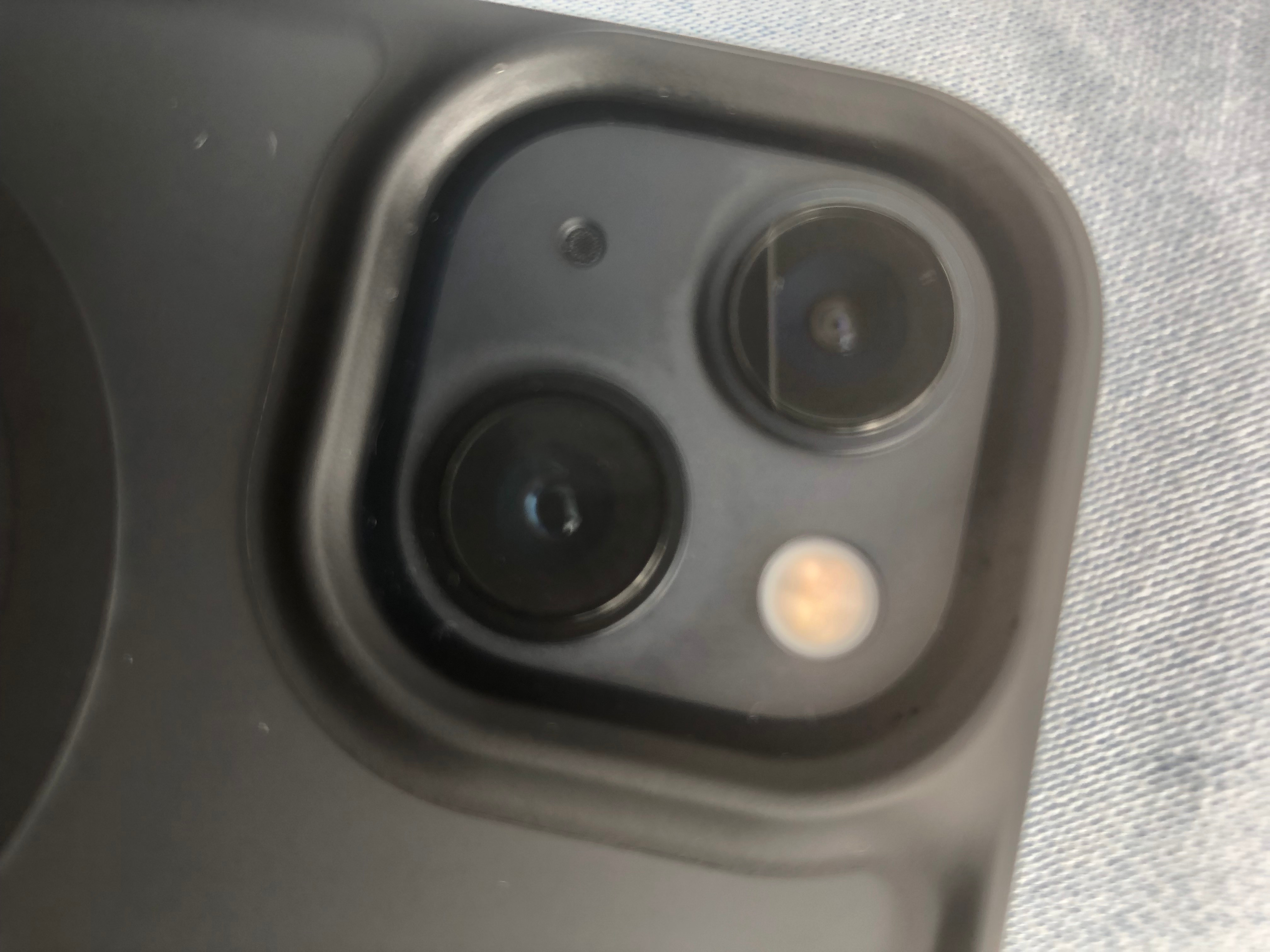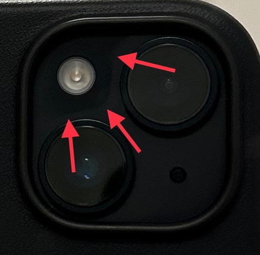 Eben ist mir aufgefallen, dass um die Kameralinsen herum eine leichte Verfärbung zu sehen ist. Ich weiß nicht, ob das schon seit dem Auspacken der Fall ist. Das iPhone hatte keine Berührung mit Reinigungsmitteln oder anderen Flüssigkeiten.