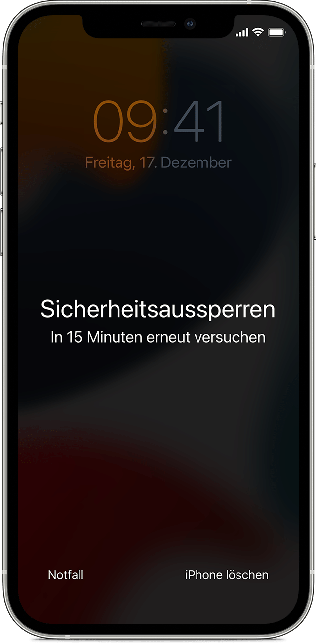 Wenn du deinen Code vergessen hast, kannst du deine Apple-ID und dein Passwort verwenden, um dein Gerät zu löschen und zurückzusetzen.
