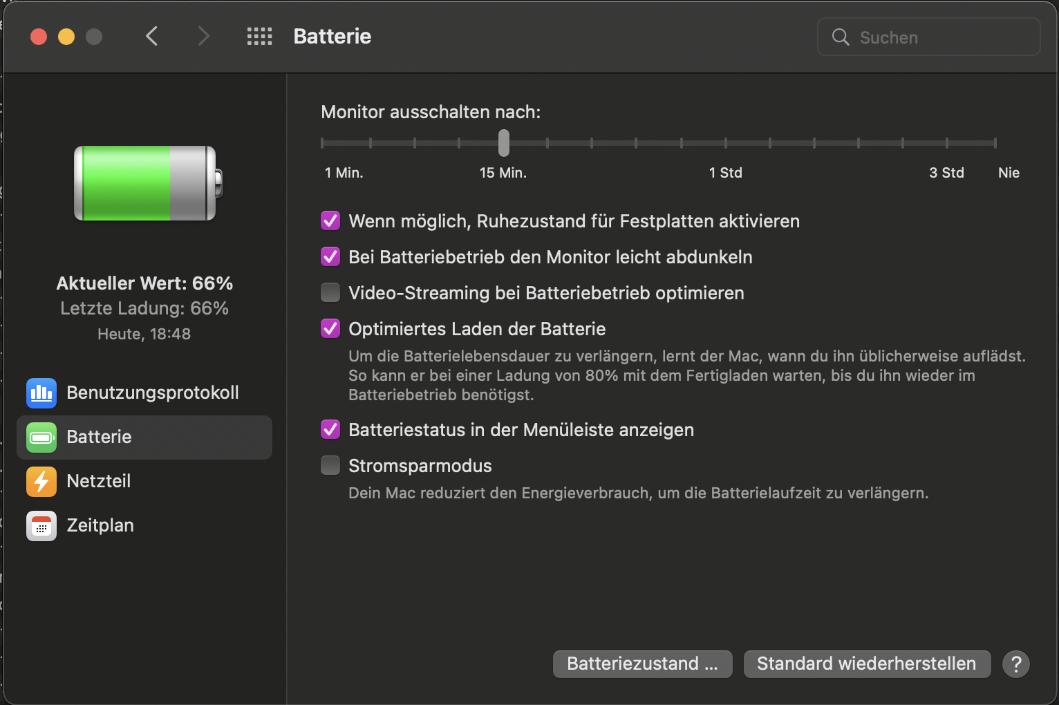Ich habe ein nagelneues Macbook Air M2. Bislang habe ich lediglich die Daten von meinem alten Notebook kopiert und den Drucker Installiert. Dann bin ich am 4.11. in den Urlaub gefahren. Das Macbook habe ich zuvor ausgeschaltet (ich bin mir ziemlich sicher) und in der Originalverpackung verstaut, der Akku war relativ voll (ich weiss nicht mehr ob ganz voll). Jetzt 7 Tage später bin ich wieder zu hause. Ich habe versucht das Macbook einzuschalten, ging nicht. Erst als ich es an den Strom gehängt habe ist es aufgestartet, die Batterie war bei 1%.