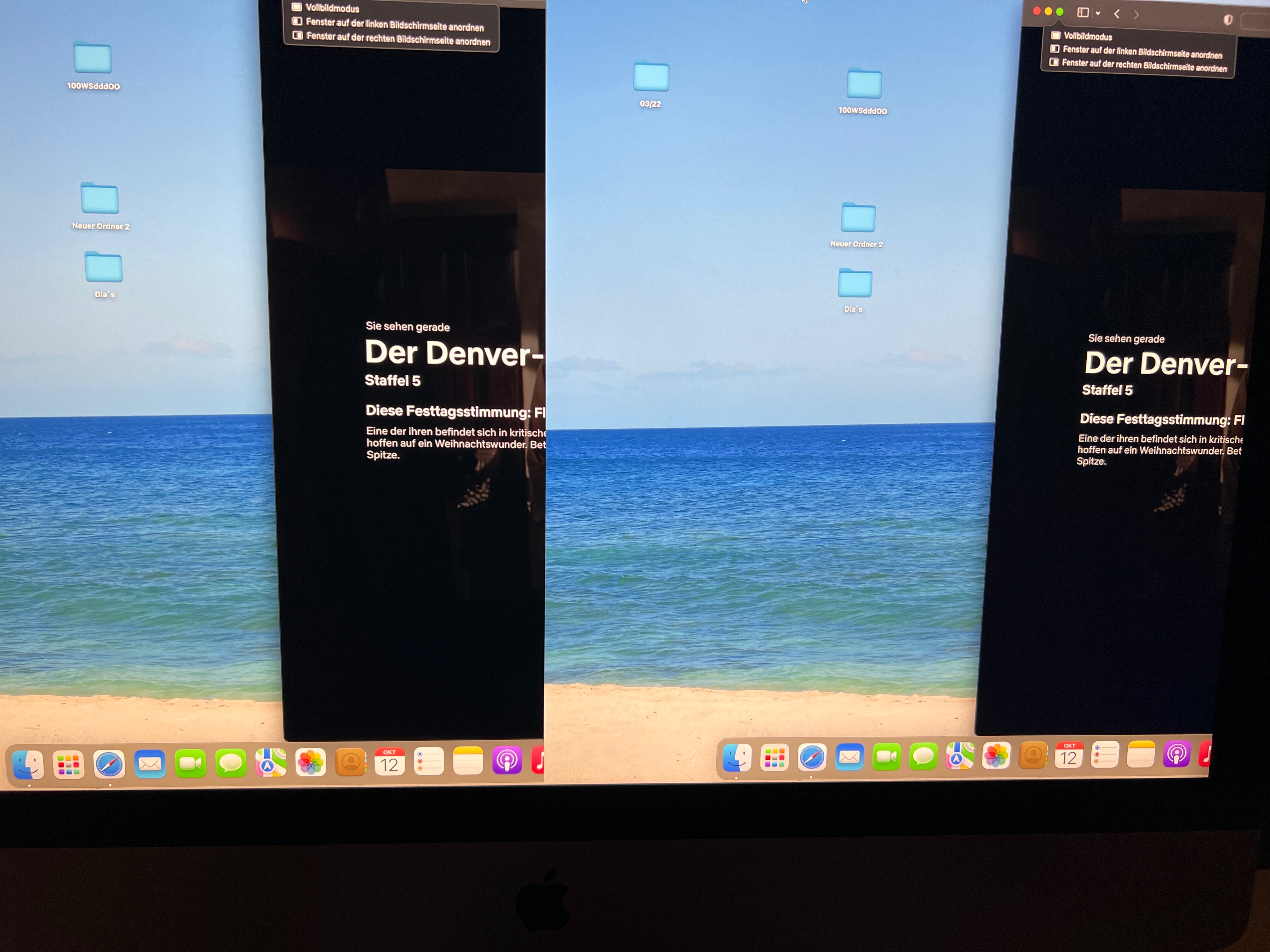 Hallo, ich habe einen IMac 27 und während ich Netflix schaue stellt er die letzten 2 Tage irgendwann einfach auf splitscreeen um, links und rechts ist genau das halbe Bild vom normalen Bildschirm zu sehen, die rechte Seite verschwindet aber komplett und es werden mir 2 mal die Linke Seite angezeigt