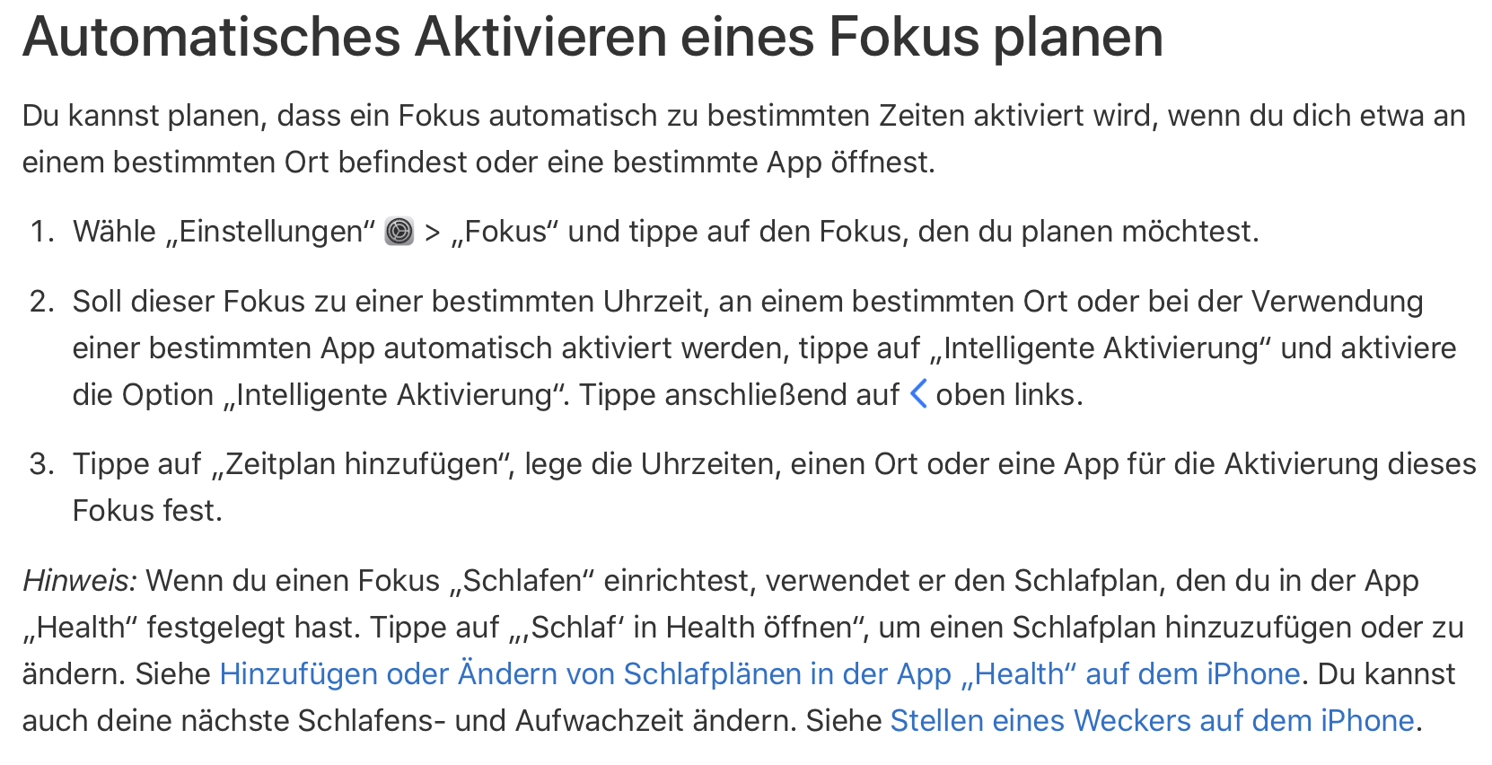 Mein iPhone hat mir gerade vorgeschlagen, während eines Kalenderereignisses den Fokus zu aktivieren. Ich musste dies mit klicken auf den Vorschlag bestätigen.