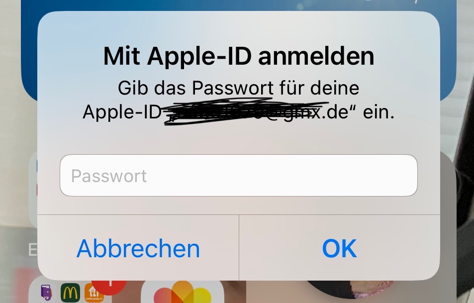 Nun muss ich jedes mal das Passwort und die Apple ID eingeben.