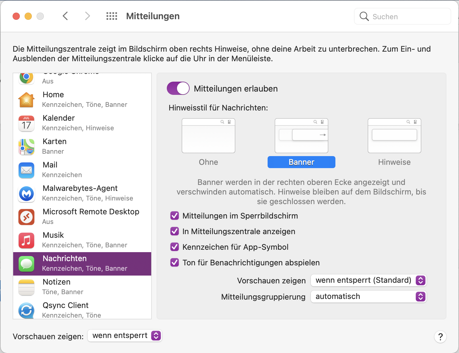 oder über die Systemeinstellungen-->Mitteilungen für jede einzelne App das Verhalten konfigurieren, ganz so wie beim iPhone:
