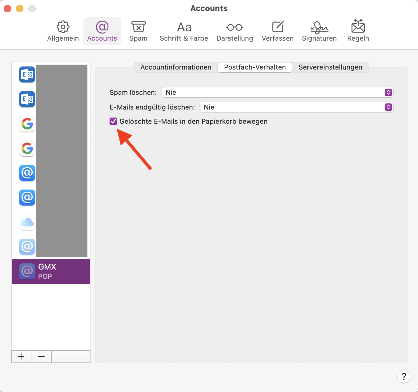 Genauso sind die Einstellungen bei mir auch und trotzdem befinden sich die gelöschten E-Mails nicht im Papierkorb.