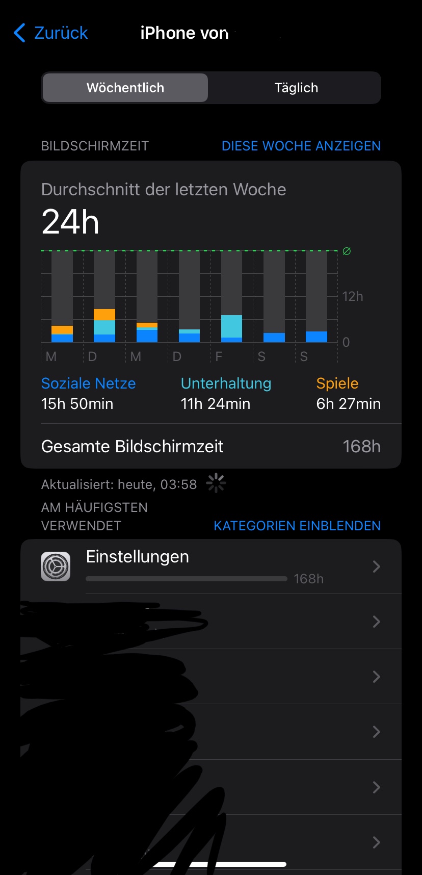 Meine Bildschirmzeit zeigt mir an das ich 24 Stunden am Tag die App „Einstellungen“ benutze und das jeden Tag. Kann mir jemand weiterhelfen?