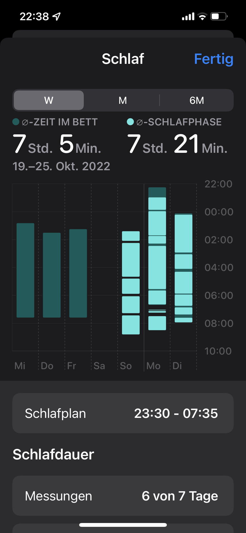 Ich versuche nach dem Tragen meiner Apple Watch die Schlafphasen mit der täglichen Analyse zu betrachten. Es fehlt allerdings der Reiter hierfür nur die Wochen Monate und sechs Monate Ansichten sind verfügbar. Ab wann oder wie wird die tägliche Ansicht dargestellt?