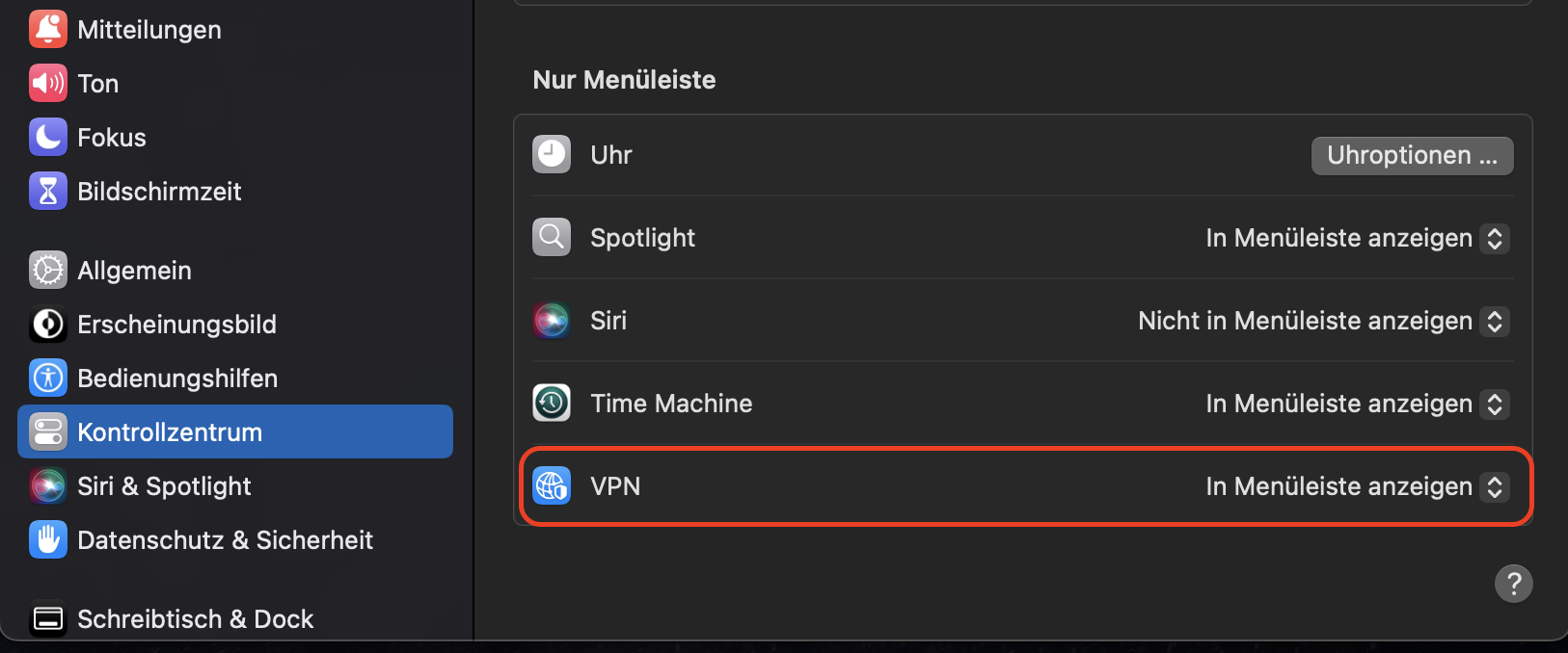 Wie kann der VPN Status in der Menüliste unter macOS Ventura angezeigt werden