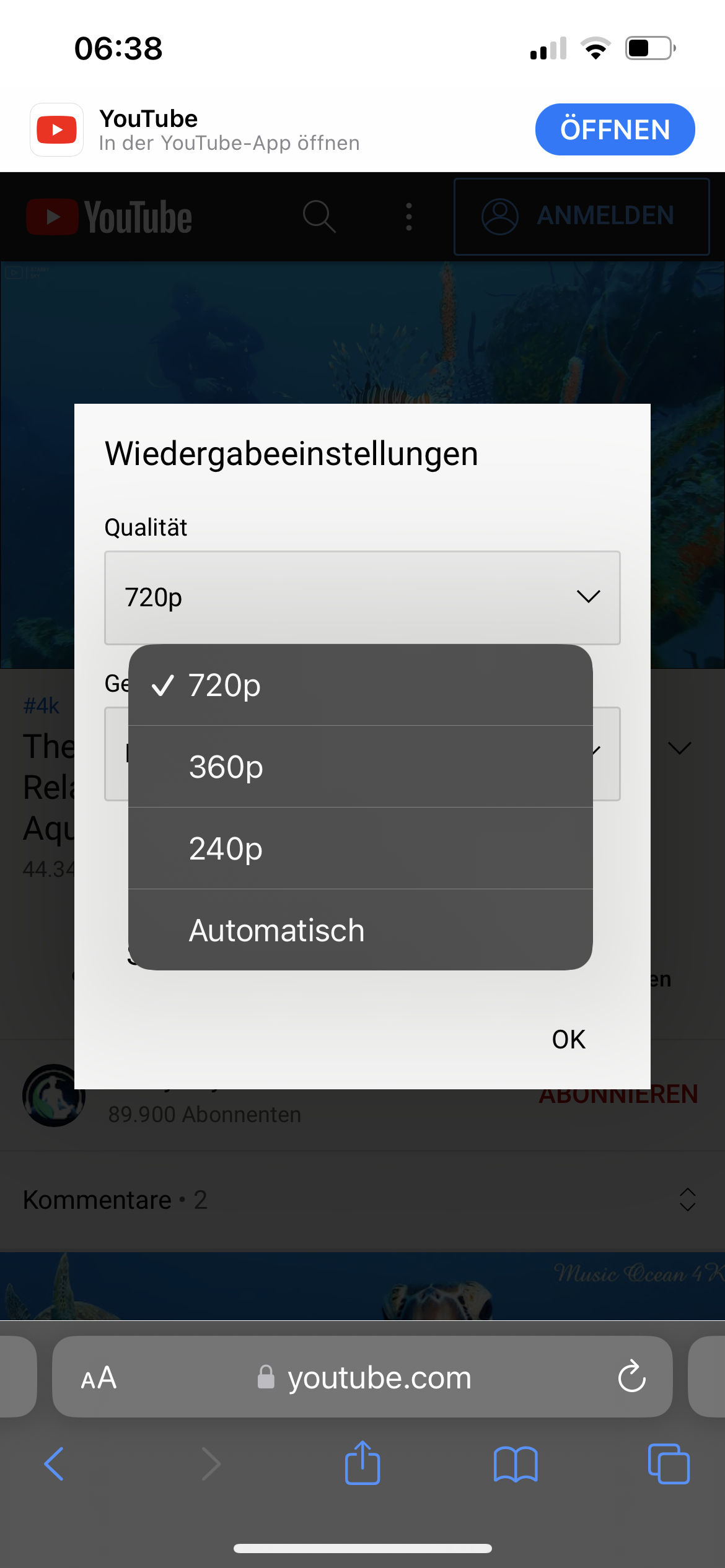 Hallo, seit dem neusten Update auf 16.1 funktioniert die YouTube App nicht mehr auf meinem neuen Iphone 14 (Ja gelöscht auch neuinstalliert) aber das schlimmere ist mir ist Aufgefallen das man die Video Qualität NICHT höher einstellen kann als 720P, getestet an 4K Videos. Das kann doch bei einem Iphone 14 nicht sein oder ???? Dass das Handy nur zu 720P fähig ist kann nicht sein oder?