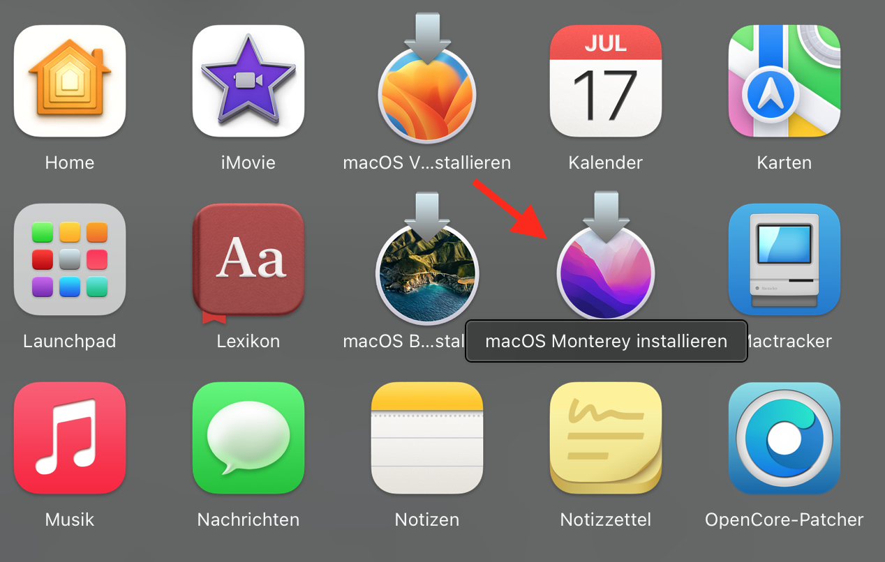 Dann solltest du dir den Monterey-Installer herunterladen und in den Programmordner packen;