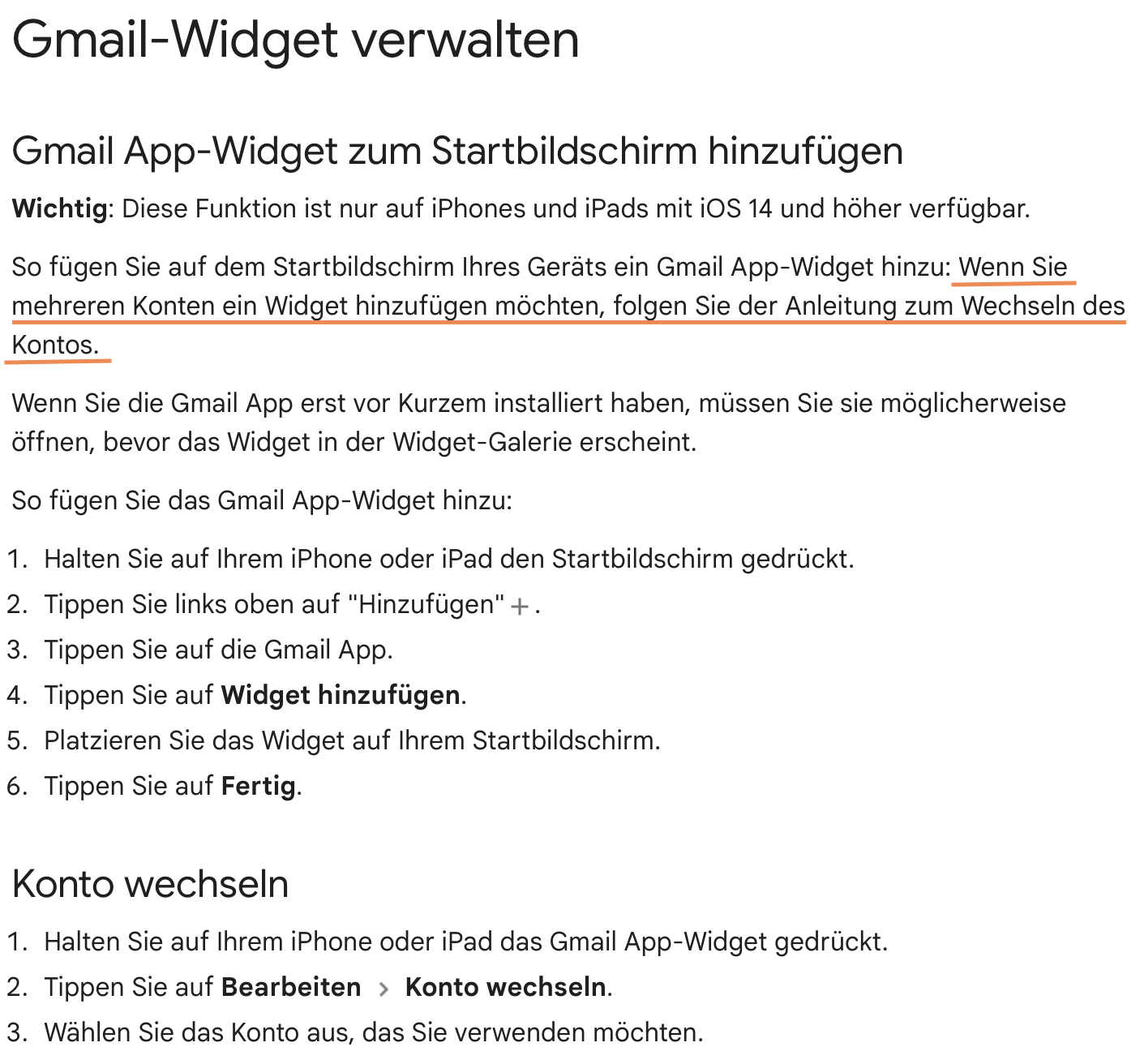 Gmail-Widget zeigt Benachrichtigungen von nur einem Konto an