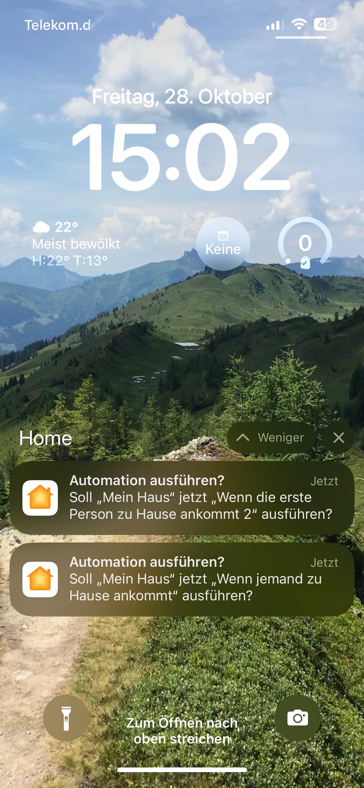 Wenn ich jetzt als erste Person ankomme, werden uns aber beide Automationen per Benachrichtigung angeboten: