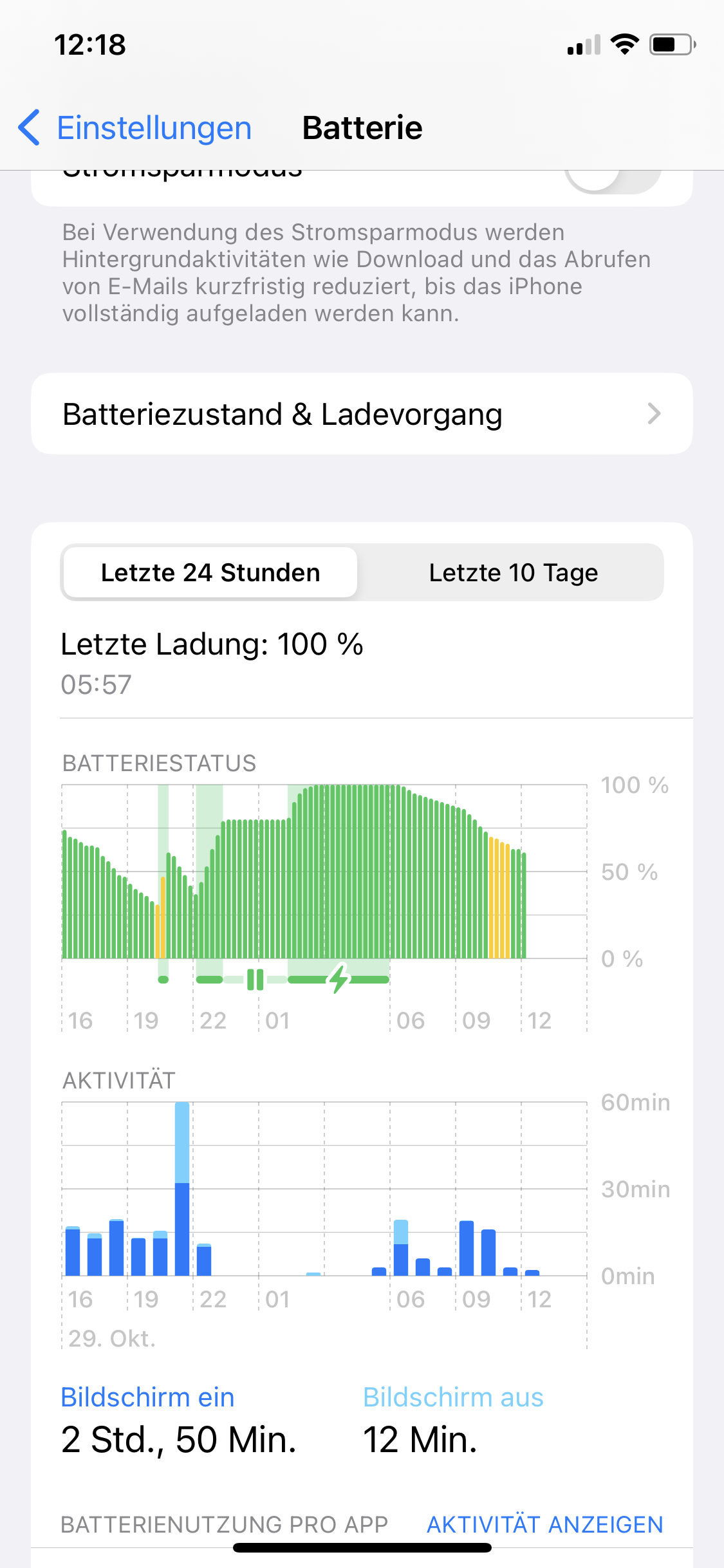 Hier sind 2 Screenshots von meiner Batterie Nutzung in den letzten 24 Stunden und der von heute.