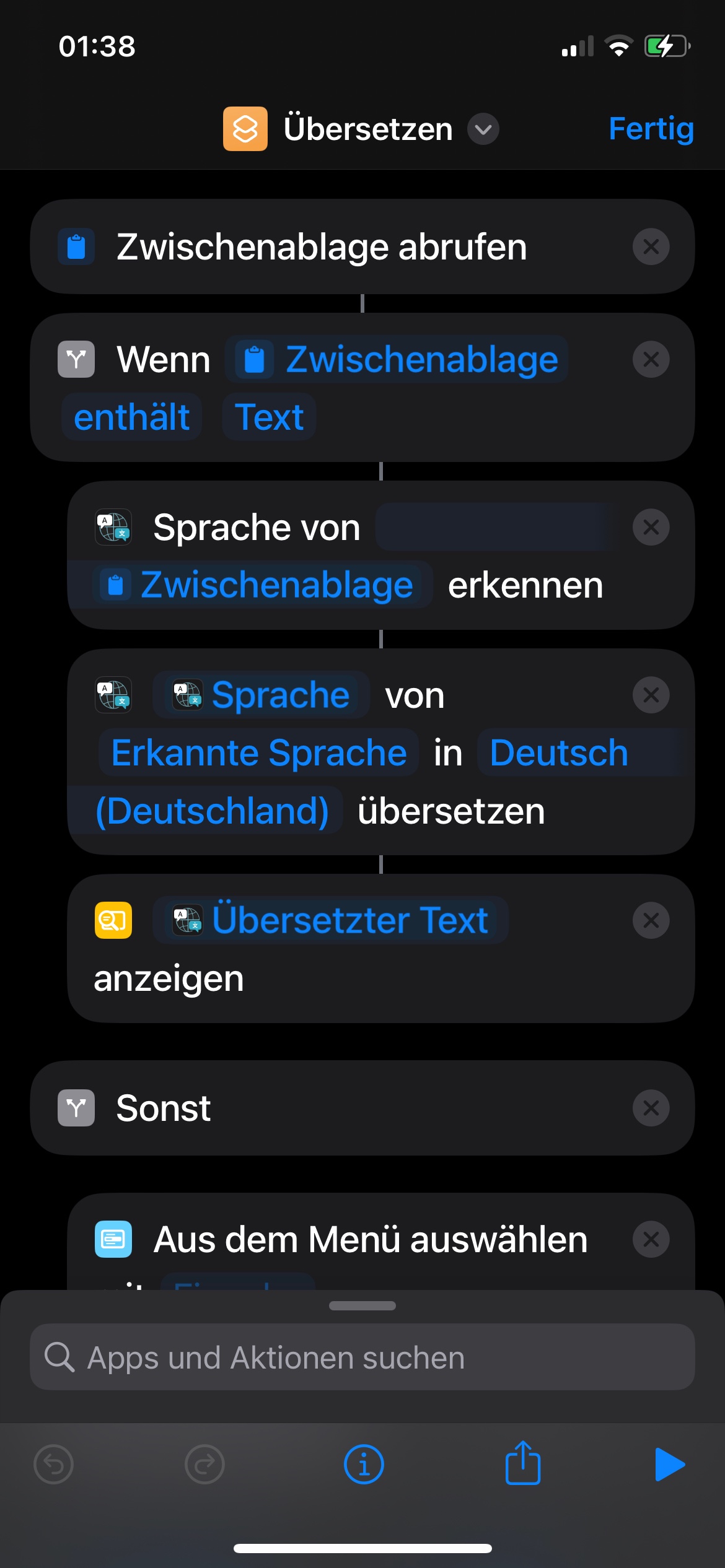 Kann mir jemand sagen warum bei diesem Kurzbefehl die If-Abfrage übersprungen wird, obwohl sich Text in der Zwischenablage befindet? Beim ausführen des Befehls wird direkt zu aus dem menü auswählen gegangen und ich bin ratlos warum.