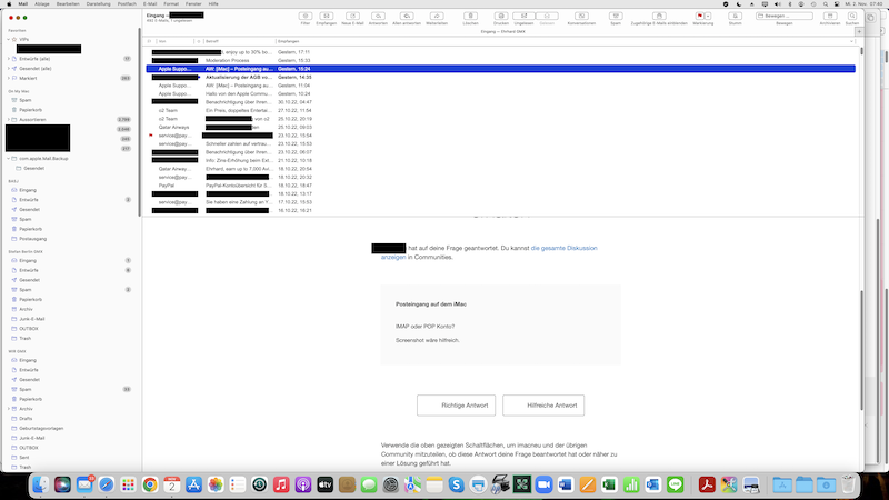Posteingang auf dem iMac ist verschwunden geworden