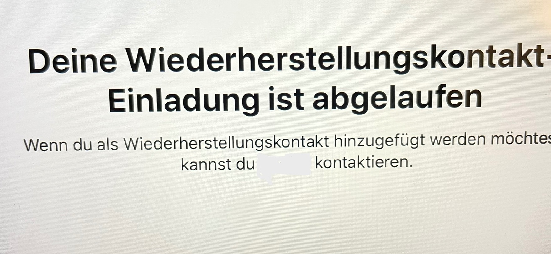 Auf dem iPhone meines Mannes sehen wir in den iCloud-Einstellungen, dass ich als Wiederherstellungskontakt hinterlegt bin. „Eigentlich“ scheint der Vorgang also funktioniert zu haben. Die Einstellungen-App auf dem iPad weiß das offenbar aber nicht.